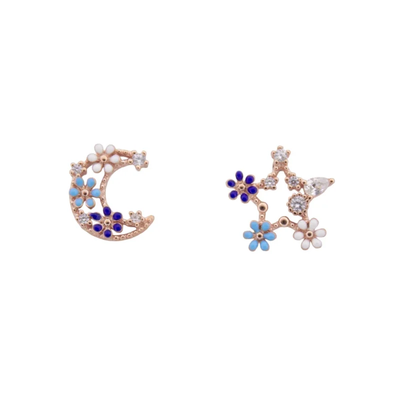 Moon & Star Floral Mismatched Studs